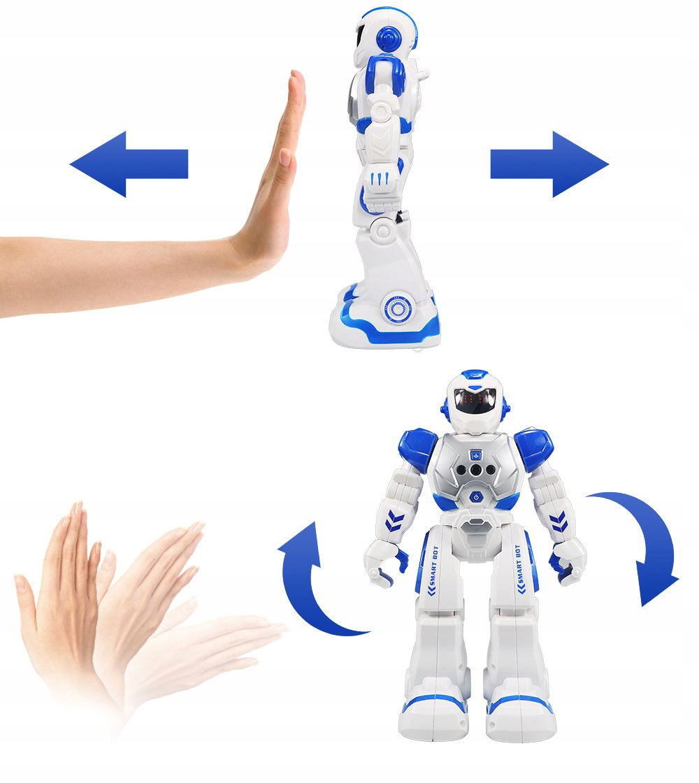 🤖Управление жестами: Роботом можно управлять с помощью жестов. Сенсорный приемник, встроенный в грудь, быстро реагирует на различные команды управления.