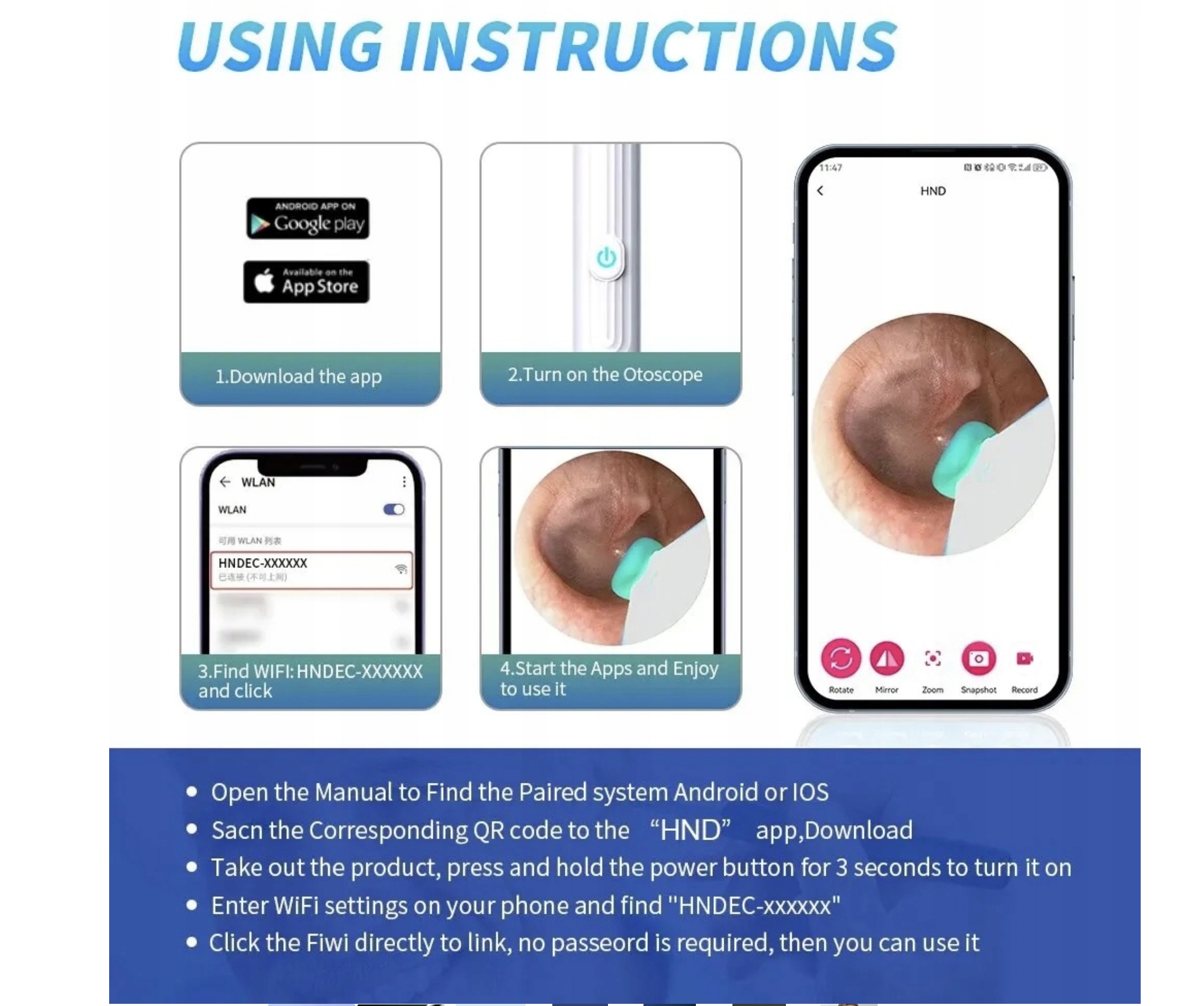 ⭐smart Endoscope - Camera - Wi -Fi - гигиена ушей - установка ⭐