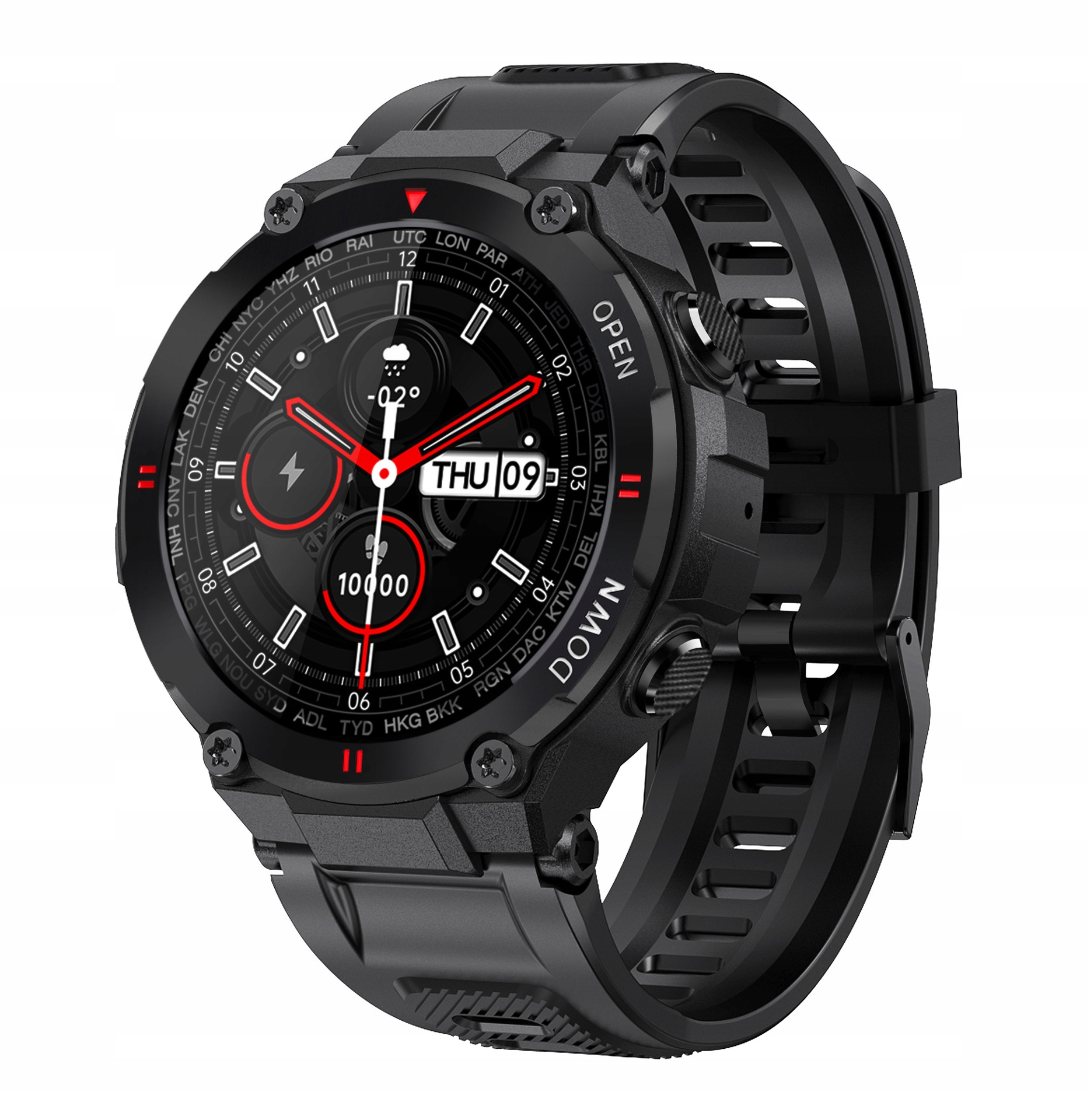 Последняя модель 2021 года SmartWatch E-SHOCK K22 с возможностью звонков и разговоров через часы! Это улучшенная версия версия модели К27. Часы для настоящих мужчин, сочетающие современный дизайн с великолепной функциональностью. Он имеет ряд чрезвычайно полезных и практичных функций, которые удовлетворят каждого пользователя, а материалы высочайшего качества гарантируют удовлетворение и долгий срок службы. В умных часах есть возможность установки более 140 циферблатов из приложения телефона! Он оснащен полноцветным сенсорным HD IPS-дисплеем, который заключен в большой конверт со стальным кольцом. Все это дополняется минеральным стеклом и силиконовым ремешком, который идеально сочетается с корпусом и отлично смотрится. Высокий класс водонепроницаемости IP67 означает, что вы можете легко мыть руки или пользоваться им под дождем. Они имеют невероятно емкую батарею емкостью 400 мАч, которая позволяет использовать часы 2-6 дней, а в режиме ожидания до 20 дней!
