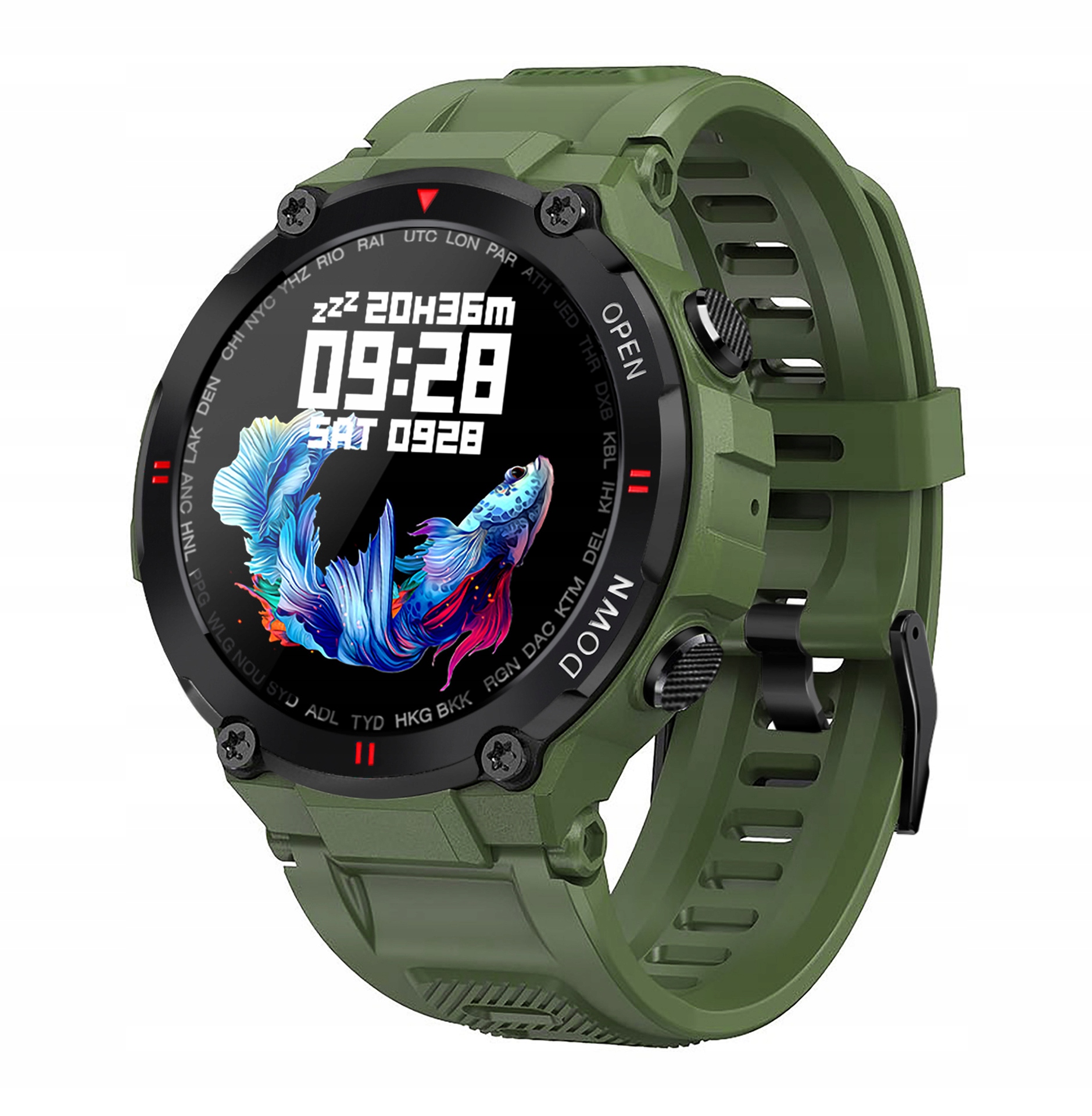 HD-ДИСПЛЕЙ 1,3 дюйма, 240 пикселей / МАТЕРИАЛЫ ВЫСОЧАЙШЕГО КАЧЕСТВА / БОЛЕЕ 140 циферблатов / ЕМКОСТЬ АККУМУЛЯТОРА 400 мАч / Bluetooth TALKS / МОНИТОР АРТЕРИАЛЬНОГО ДАВЛЕНИЯ / ПУЛЬСОКСИМЕТР / НОВОСТИ НА ЭКРАНЕ / ВОДОНЕПРОНИЦАЕМОСТЬ IP67 / СПОРТ / ПРИМЕНЕНИЕ НА ПОЛЬСКОМ ЯЗЫКЕ
