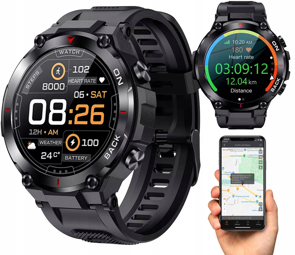 Представляем последнюю модель K37 SmartWatch. Часы для настоящих мужчин, сочетающие современный дизайн с великолепной функциональностью. Превосходное качество изготовления и материалы высочайшего качества гарантируют удовлетворение и долгий срок службы. Умные часы оснащены системой GPS-навигации. Он позволит вам точно измерить пройденное расстояние, скорость и рассчитать темп. Все эти данные сохраняются в специальном приложении InfoWear. После завершения тренировки, ходьбы, бега или езды на велосипеде мы сможем прочитать точный пройденный маршрут в приложении. Он оснащен полноценным сенсорным цветным HD IPS-дисплеем, который заключен в большой конверт со стальным кольцом. Все это дополняется минеральным стеклом и силиконовым ремешком, который идеально сочетается с корпусом и отлично смотрится. Высшийкласс водонепроницаемости IP68 позволяет легко мыть руки, пользоваться им под дождем и даже плавать! У них невероятно емкий аккумулятор емкостью 480 мАч, что позволяет использовать часы 7-14 дней (в зависимости от использования GPS), а в режиме ожидания до 20 дней!