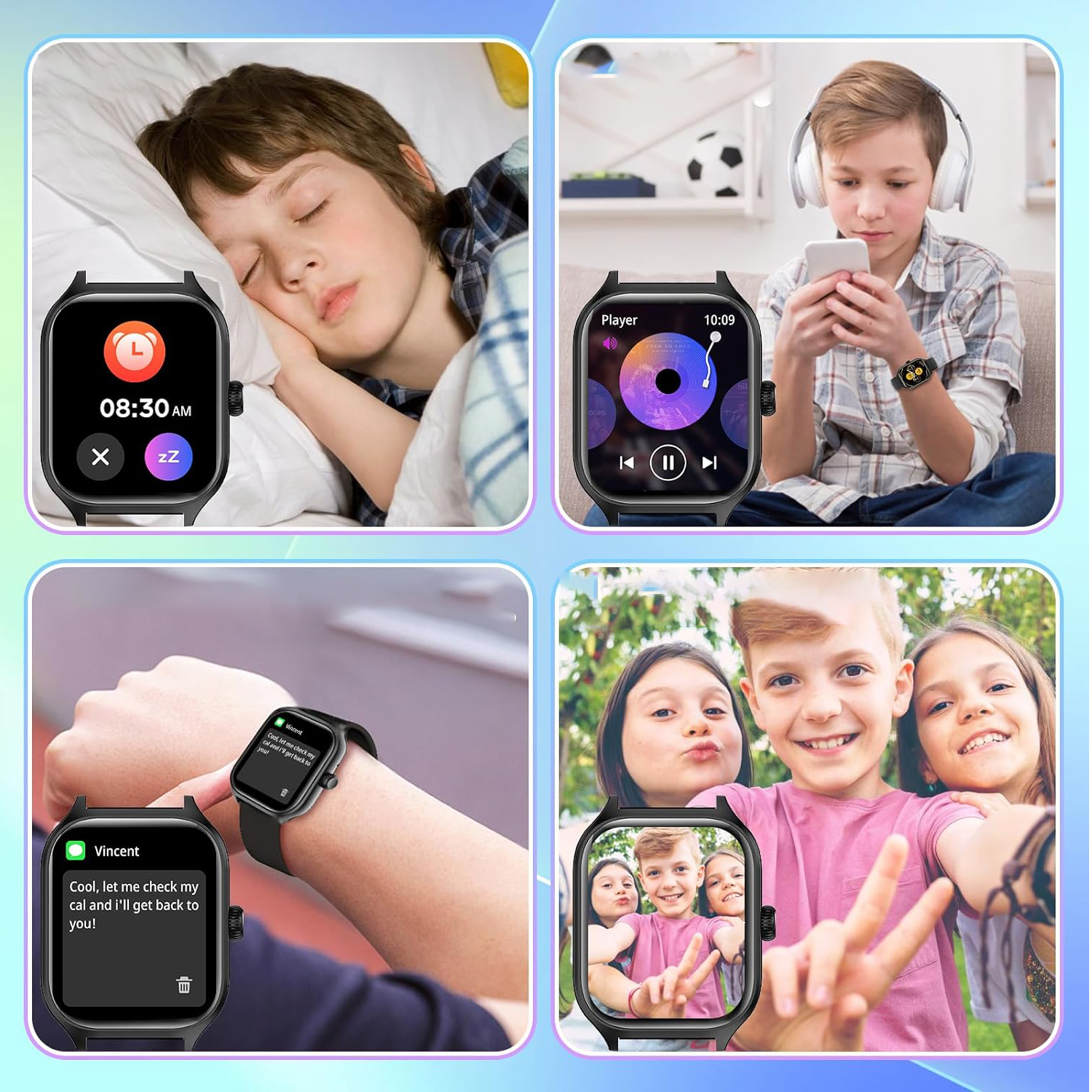 1,85-дюймовый сенсорный экран и индивидуальный циферблат: Умные часы оснащены 1,85-дюймовым ЖК-экраном, который обеспечивает глубину оттенков и четкость. iOS 9.0 или более поздняя версия, Android 5.0 или более поздней версии. После решения со своего телефона вы можете выбрать один из более чем 100 циферблатов или установить фотографию в качестве обоев. Это позволяет управлять экраном. Умные часы для детей также легко читаются на солнце.