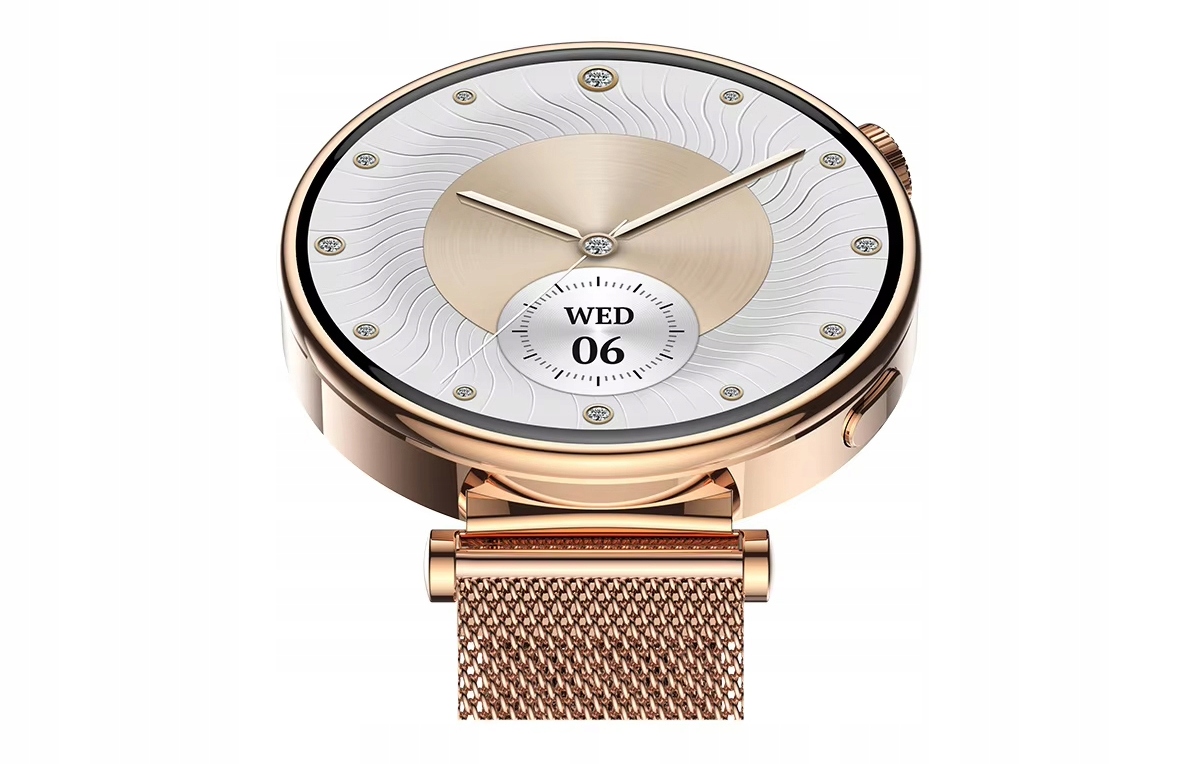 ⭐ Стиль и комфорт: Золотой корпус и два сменных ремешка (розовый каучук и золотистый металл) подходят к любому стилю, от элегантного до спортивного.