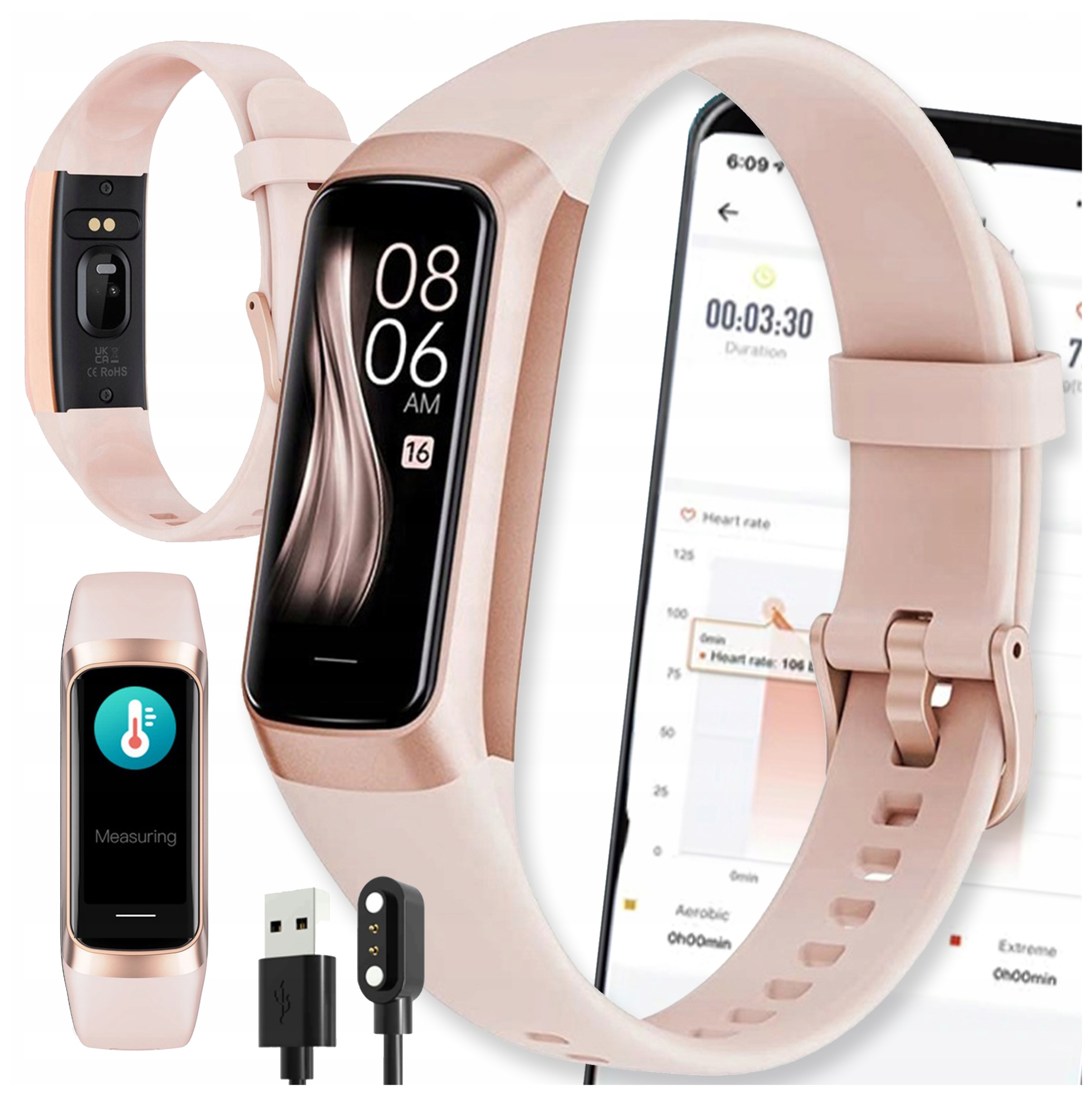 ✏️Измерения: шаги, калории, расстояние, оценка качества сна, кровь измерение оксигенации (Sp02), измерение частоты пульса на запястье (постоянное, по времени), измерение артериального давления, измерение температуры тела