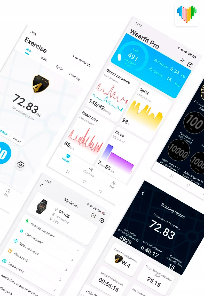 Чтобы иметь возможность вести дневник своих достижений, вам понадобится приложение WearFit Pro. установить на компьютер наш смартфон и выполнить сопряжение устройств. Приложения можно загрузить на телефон с iOS или Android.