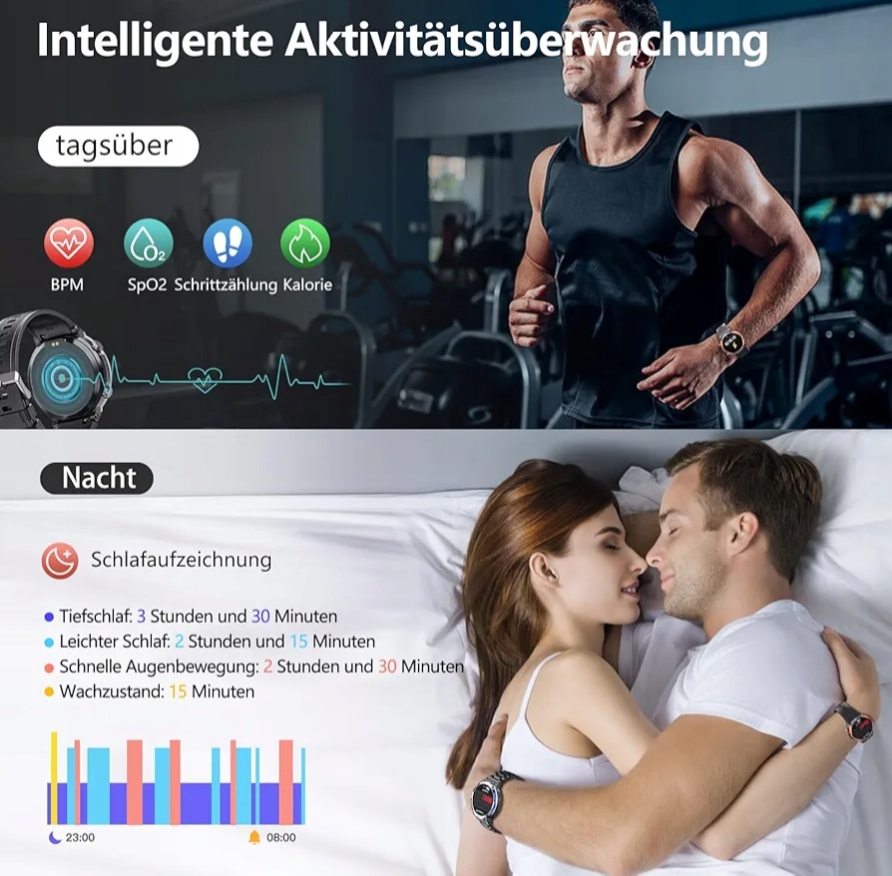 ✔️Подключение Bluetooth и напоминание о сообщении. Несколько функций связи для более удобного общения: вы можете легко принимать и совершать звонки со своих умных часов, а также получать уведомления о звонках, текстовых сообщениях, электронных письмах, социальных сетях и других типах сообщений, поэтому вы не пропустите важную информацию.< /п >