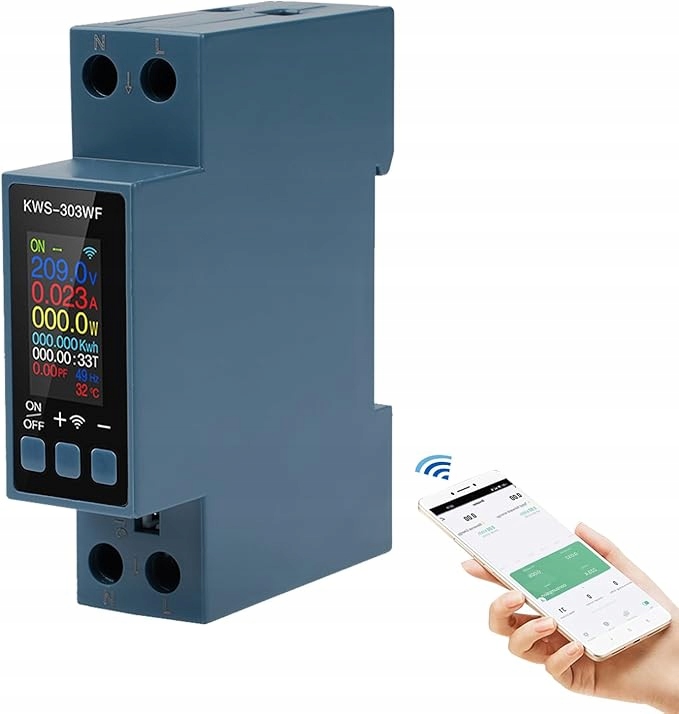 интеллектуальная счетчик мощности 8 в 1, 40 a, Wi-Fi, 230 В AC, Wi-Fi, защита от перенапряжения, перегрев, перегрузка и защита от сбоя сети (KWS-303 Blue)