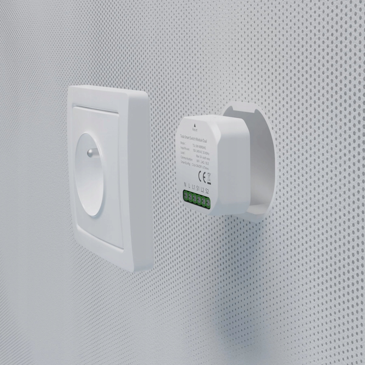 Преимущество интеллектуального двойного реле модуля интеллектуального переключателя TESLA заключается в том, что оно подключается к классическому переключателю в монтажной коробке в стене. Таким образом, вы получите все преимущества интеллектуального освещения, не отказываясь от оригинальных выключателей, которые идеально впишутся в остальной интерьер.