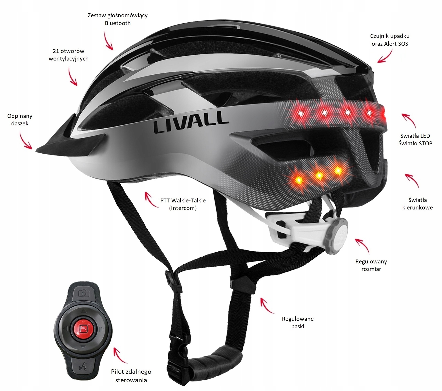 Для вашей собственной безопасности будьте хорошо заметны другим участникам дорожного движения. Умный шлем Livall MT1 Neo оснащен очень удачно расположенными и хорошо заметными светодиодными фонарями, которые прекрасно предупреждают окружающих о вашем присутствии на дороге, тем самым значительно повышая вашу безопасность.