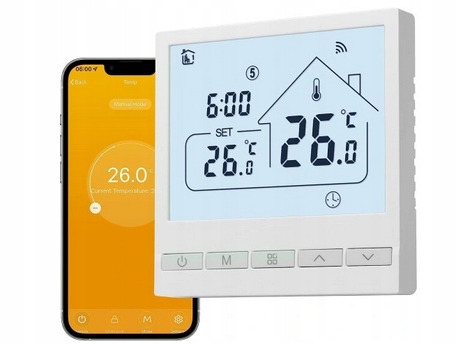 Простой пользовательский интерфейс для исключительной простоты использования. Bluetooth и Wi-Fi можно использовать для быстрого подключения к мобильному телефону, этапы работы просты; голосовое управление интеграцией умного дома и отоплением с помощью Amazon Alexa и Google Assistant. Просто дайте голосовую команду, чтобы включить и выключить термостат и даже установить для него определенную температуру по мере необходимости (например, «Алекса, установи в гостиной 20 °). разложение 0,5°С; регулируемый диапазон от 5 до 35°C; ЖК-экран с сенсорной кнопкой читается даже в темноте; дополнительные функции: ручной режим в режиме программирования; Калибровка температуры; Функция памяти при выключении, блокировка для детей, функция защиты от замерзания, защита от высокой температуры, разница температур запуска и т. д.