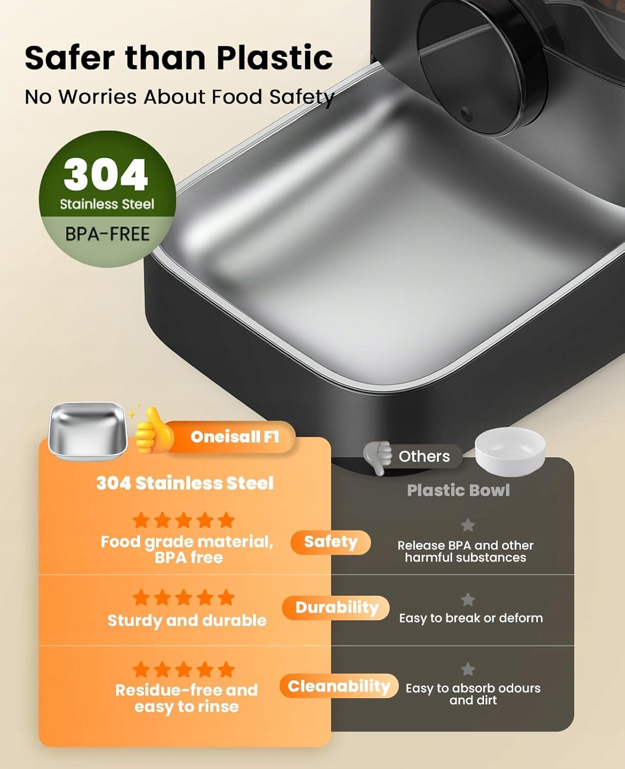 Устройство было оснащено миской из высококачественной нержавеющей стали, которая обеспечивает не только долговечность, но и простоту очистки. Это особенно важно для здоровья вашего питомца, устраняя риск накопления бактерий.