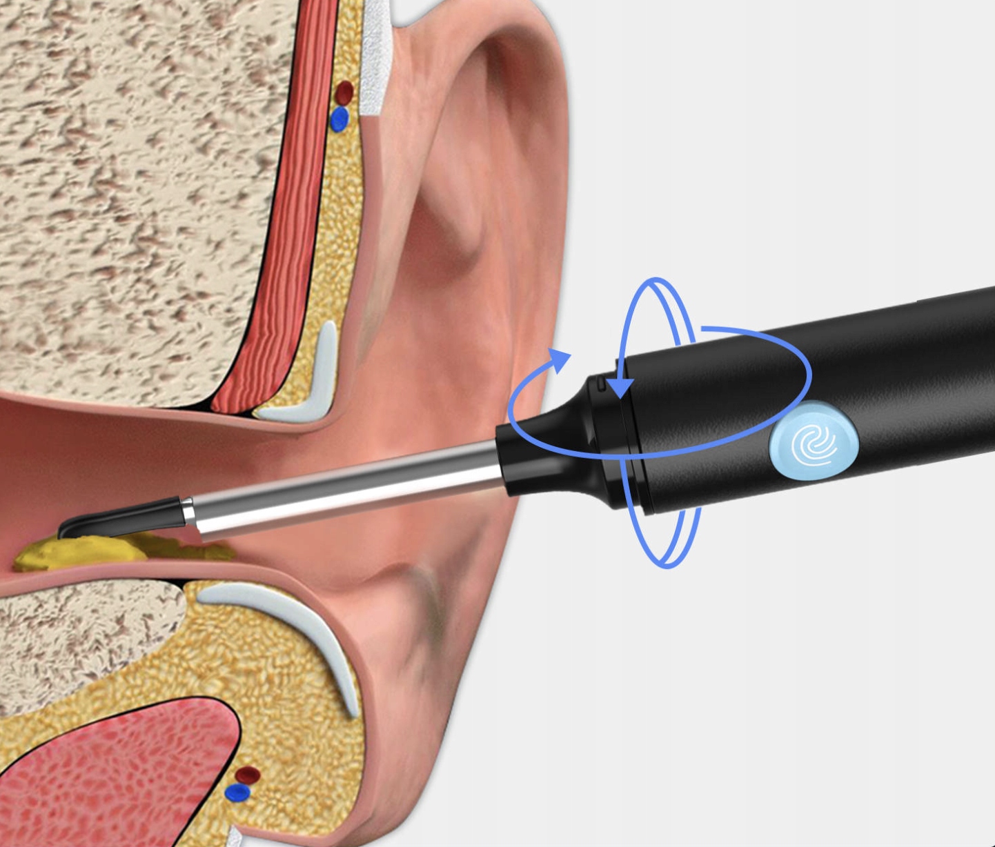 ✅Можно использовать для различных ушных каналов. Турбинный вентилятор с реверсивными зубьями очень эффективен в избавлении от всех видов ушной серы.