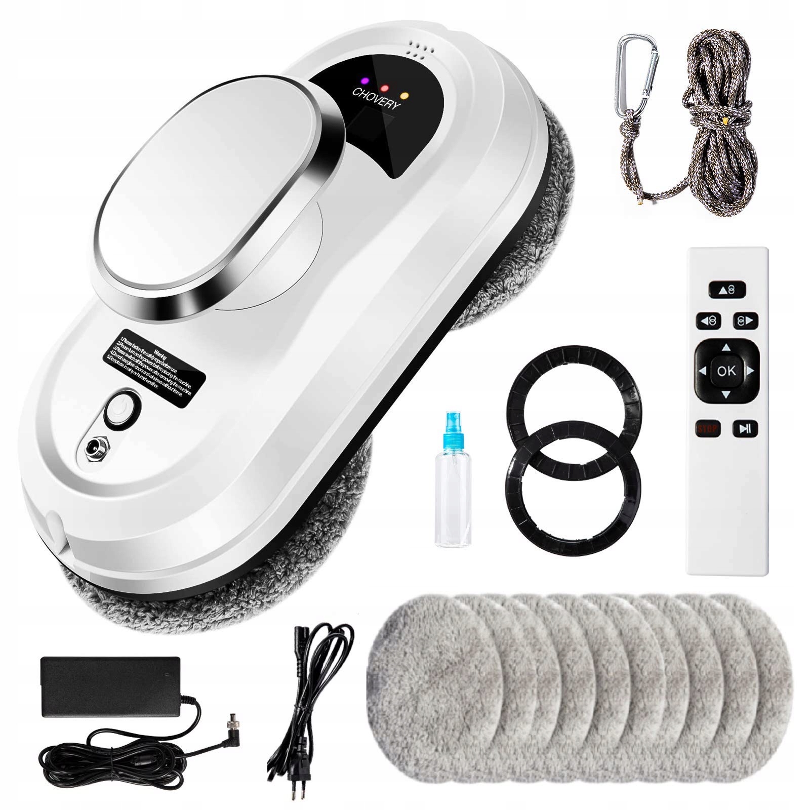 Чистящие кольца подушечками из микрофибры с помощью микрокомпьютера система привода и сверхмощнаясистема вакуумной адсорбции очищает все типы гладких и прозрачных стекол, не повреждая их!