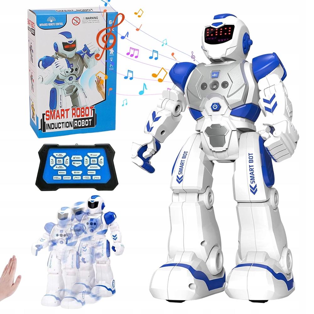 🤖 Игрушки для мальчиков и девочек 6-9 лет - подарки для детей в виде роботов с дистанционным управлением. Интеллектуальный программируемый робот с датчиком жестов 2,4 ГГц — обновленная версия (синий и белый)
