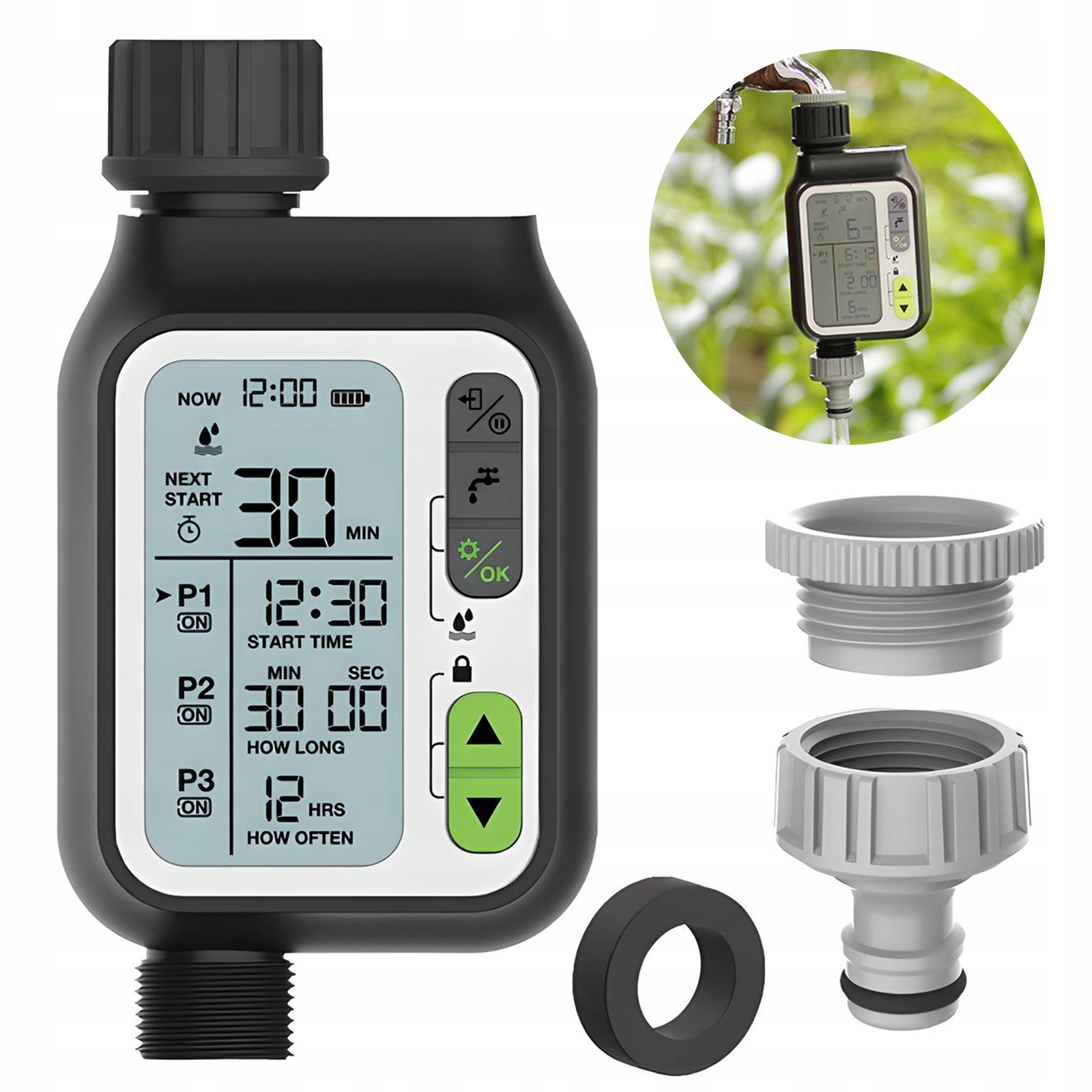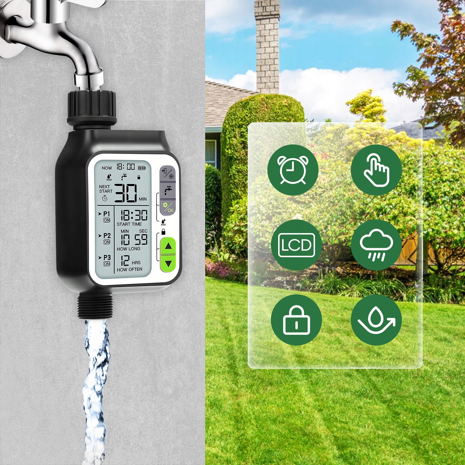 ⭐⭐⭐⭐⭐ h1> интеллектуальный таймер воды для сада для сада - автоматическая система орошения с датчиком дождя, 3 нестандартные программы, большой ЖК -дисплей 3,5 ", блокада перед детьми, водонепроницаемый IPX5 - идеал для газонов, растений и балконов 💧🌧 🏡 🏡 h2>