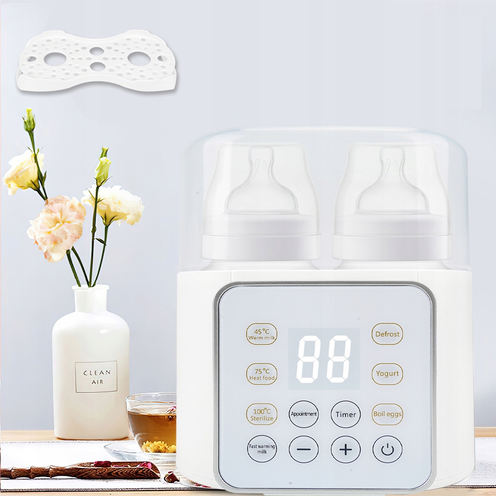 - Многофункциональный подогреватель бутылочек для младенцев с функцией быстрого нагрева молока, подогрева продуктов, стерилизации, разморозки, йогурта, яиц вкрутую, таймера, настройки встреч, круглосуточного поддержания тепла, регулировки температуры и функции автоматического отключения.