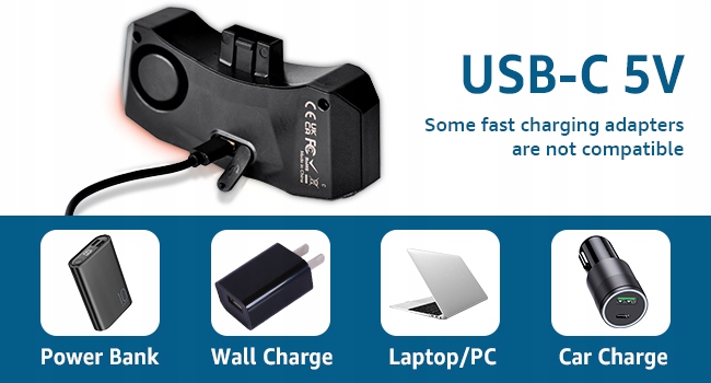 - Возможность зарядки: только аккумулятор заднего фонаря (перезаряжаемый через USB Type-C).