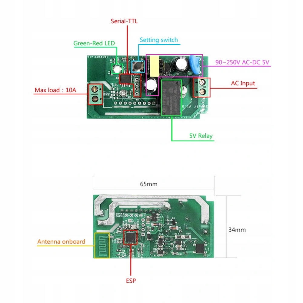 Готовый модуль, позволяющий управлять домашними устройствами 230 В мощностью до 2000 Вт через сеть WiFi с помощью приложения для смартфона из любой точки мира. Устройство имеет резьбовые соединения для установки кабеля.