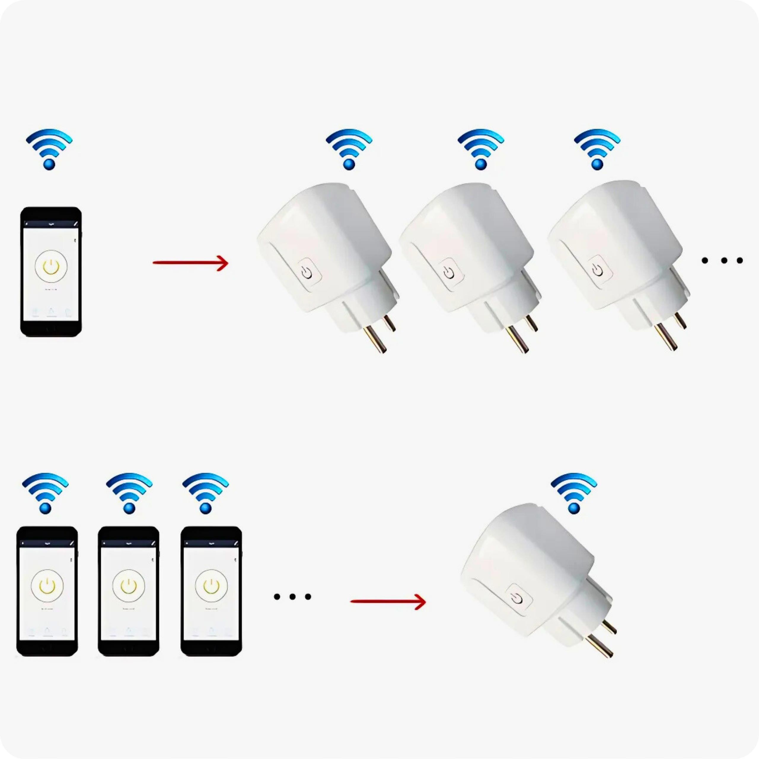 одно устройство, например, Ваш телефон, может подключать и управлять множеством розеток одновременно , что позволяет полную автоматизацию всего дома . Кроме того, один сокет может контролироваться многими устройствами , благодаря которого каждый член домохозяйства может иметь P для своей функции со своего смартфона.