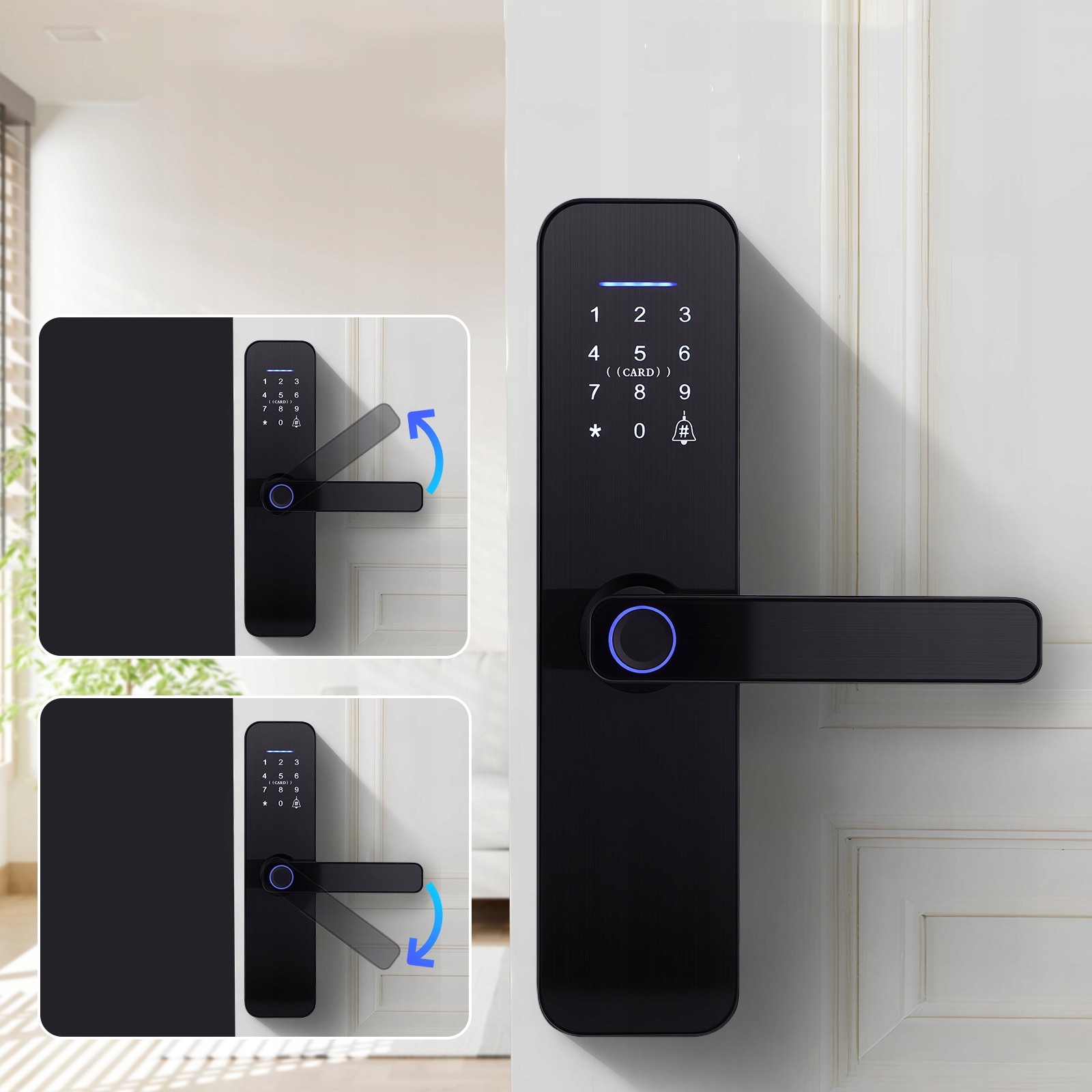 Умный замок отпечатков пальцев использует биометрическую технологию (точность распознавания отпечатков пальцев составляет 99,7%) в сочетании с марганцевой сталью + материал из нержавеющей стали 304, обеспечивая 5 методов разблокировки (отпечаток пальца/пароль/карта/механический ключ/аварийное питание USB) и подходит для толстых дверей 30100 мм.