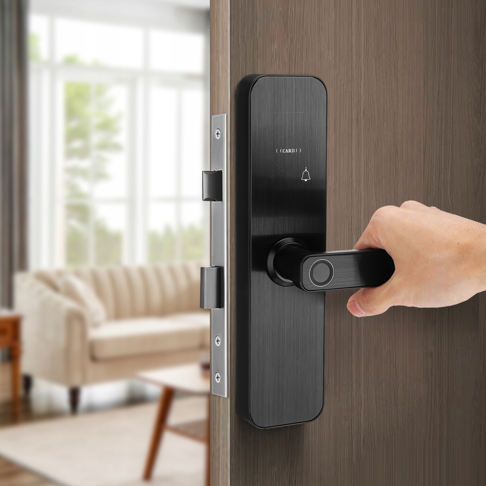 ✔ Универсальные методы разблокировки: этот замок легко объединяет четыре варианта разблокировки, включая отпечаток пальца, клавиатуру, карту и ключ, подходящие для различных предпочтений пользователя.