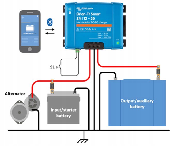 Зарядное устройство Orion DC-DC 30А позволяет заряжать гостиничный аккумулятор от генератора переменного тока