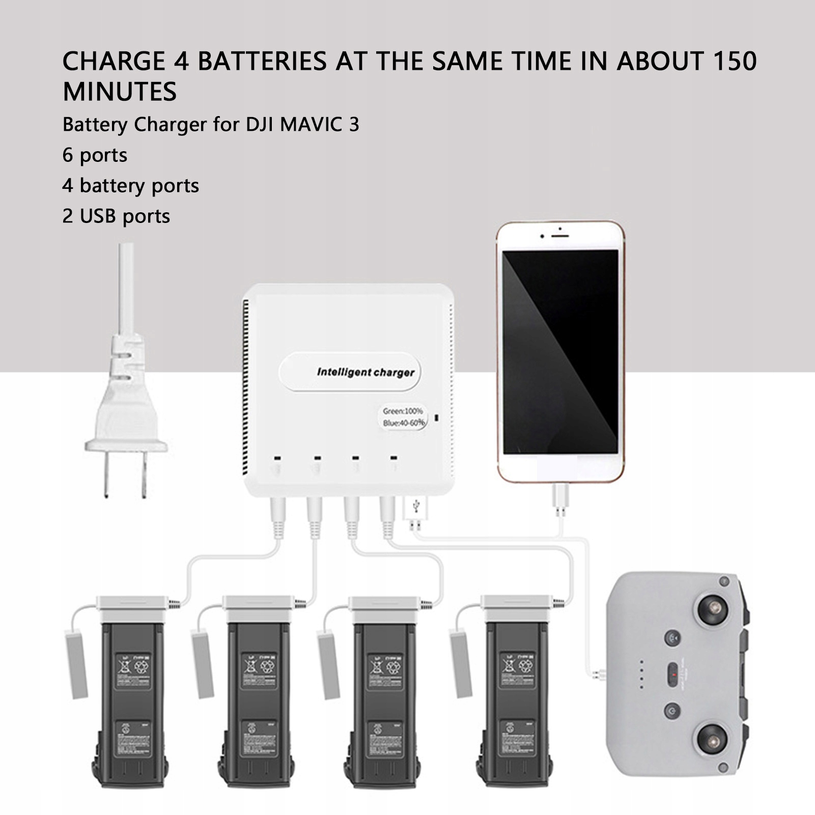 Время зарядки: около 150 минут для полной зарядки 4 батарей. Применение: Подходит для дрона DJI MAVIC 3.