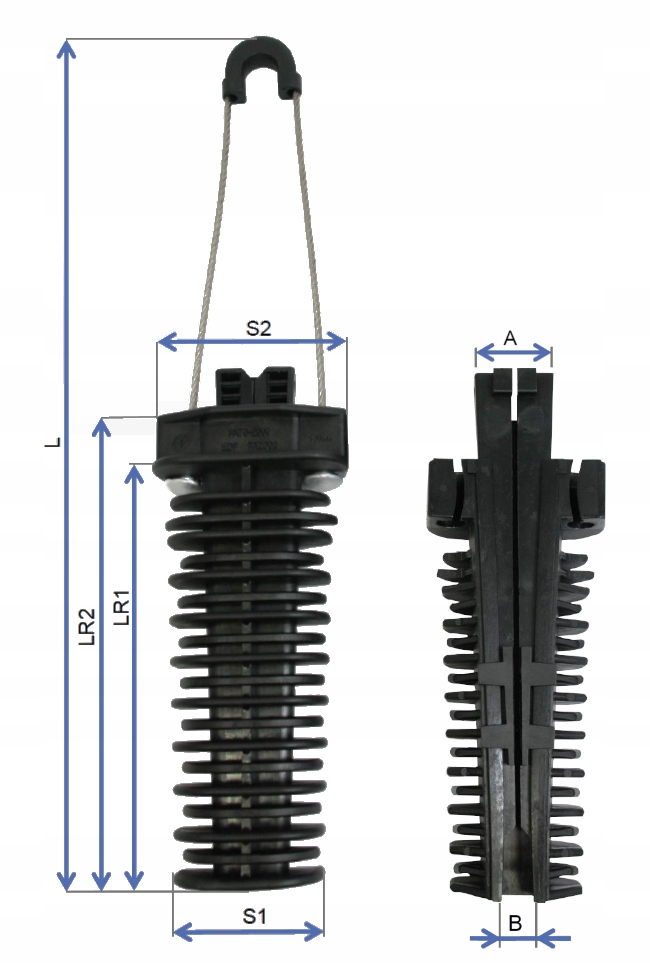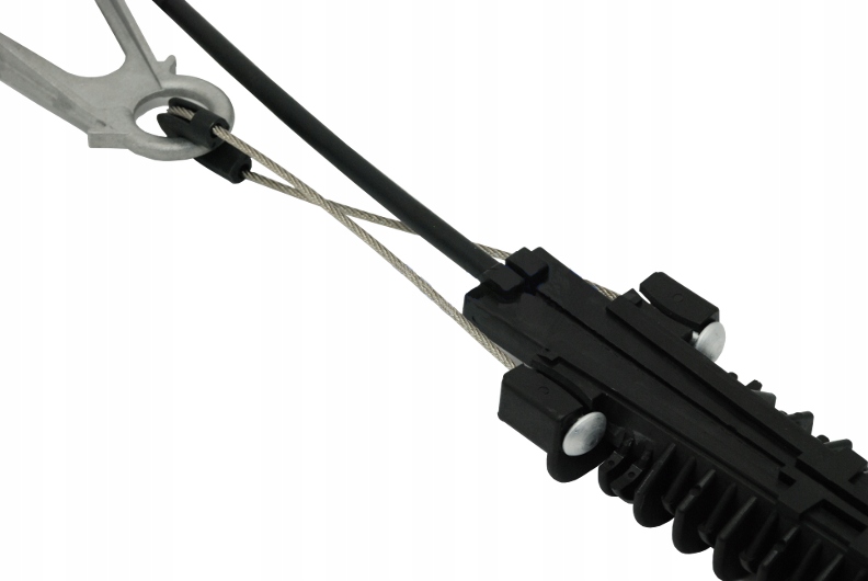 Удлинительный держатель PA-1500 предназначен для подвешивания самонесущих круглых кабелей (диаметром 8–12 мм). Назначение оттяжек – натяжение тросов АДСС между пролетами. Оттяжки обеспечивают окончание лески и ее натяжение. Благодаря съемному тросу держатель можно использовать на любых типах брекетов.
