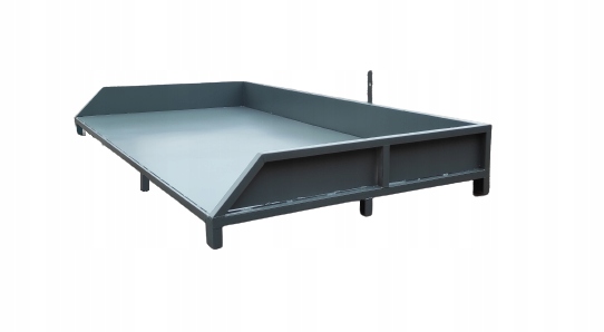 Платформа ПЛП — это саморазгружающийся поддон для плоского проката или мусора. Он приспособлен для работы с вилочными погрузчиками. Он полностью изготовлен из листового металла толщиной 4 мм, что делает его чрезвычайно прочным. Платформа сварена с обеих сторон и усилена по всей поверхности, что обеспечивает ее стабильность. Основание имеет ножки C-образного сечения, которые изолируют поддон от земли. Разгрузка осуществляется с помощью рычага, расположенного на задней стенке. Его необходимо разблокировать вручную или с помощью стального троса с места оператора вилочного погрузчика. Разгрузка происходит под углом 45°. После каждого использования фиксируйте рычаг в вертикальном положении с помощью цепи с карабином, расположенной на стене. Это защита от случайного опрокидывания платформы во время движения. Для дополнительной защиты платформы от соскальзывания с вил при движении или разгрузке содержимого используется цепь, которую следует закрепить на каретке автомобиля, и специальная ручка у основания.