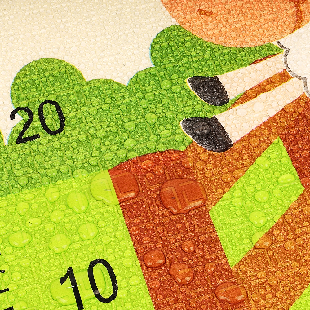 Каждая страница покрыта текстурой в виде цифр и букв, помимо обеспечения противоскользящего их можно использовать для обучения детей старшего возраста читают, а их выпуклая поверхность стимулирует сенсорную интеграцию детей