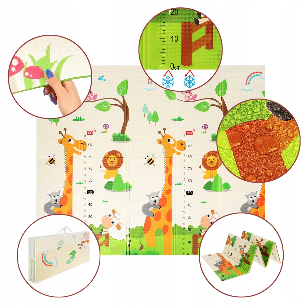 5️⃣ Сумка в комплекте – благодаря идущей в комплекте сумке вы можете быть уверены, что коврик не испачкается во время работы. транспорт. Ушки на чехле детского коврика XXL облегчают транспортировку.