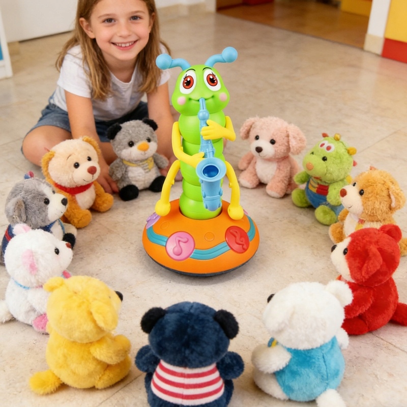 1. Забавная музыкальная игрушка: эта очаровательная игрушка-гусеница движется, играя музыку. Тело, руки и ноги могут двигаться. Забавная музыкальная игрушка для самых маленьких.