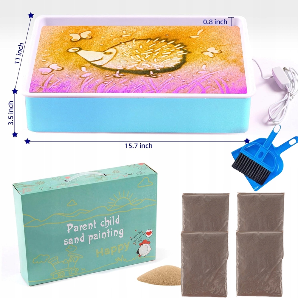 - ⭐Качество и безопасность -Набор песочных игрушек изготовлен из безопасного и экологически чистого полипропиленового материала и не содержит токсичных веществ. Безопасное напряжение 5 В, отсутствие риска поражения электрическим током. Детская песочная доска для рисования излучает мягкий свет без теней, защищая детские глаза.