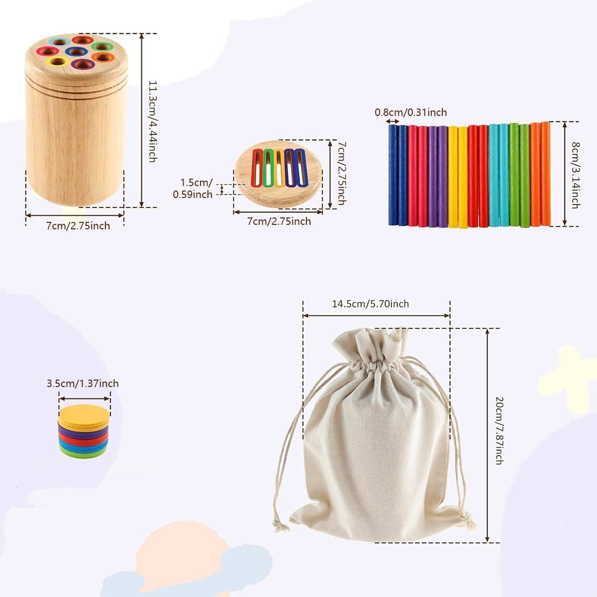 🌈【Портативный дизайн】Игрушка для сортировки цветов имеет компактные размеры, ее легко переносить и хранить, она подходит для многих случаев. В комплект входит тканевый мешочек со шнурком для удобного хранения. Идеально подходит для дома, учебы, путешествий и т. д.