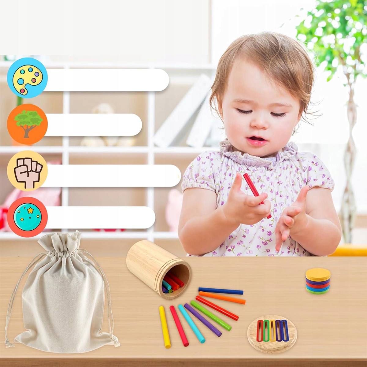 🌈【Качественное дерево】Эта игрушка для сортировки цветов изготовлена из высококачественного каучукового дерева, прочного и долговечного. Тщательная обработка гарантирует, что каучуковое дерево имеет гладкие края, не имеет острых углов и заусенцев, его безопасно использовать.