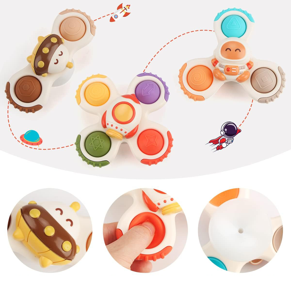 👶Три комбинации вращающихся игрушек с уникальными присосками дизайны, в том числе космонавты, космические корабли и ракеты. Спереди расположены геометрические фигуры, а сзади — цифры, которые способствуют развитию сенсорных способностей и навыков распознавания чисел.