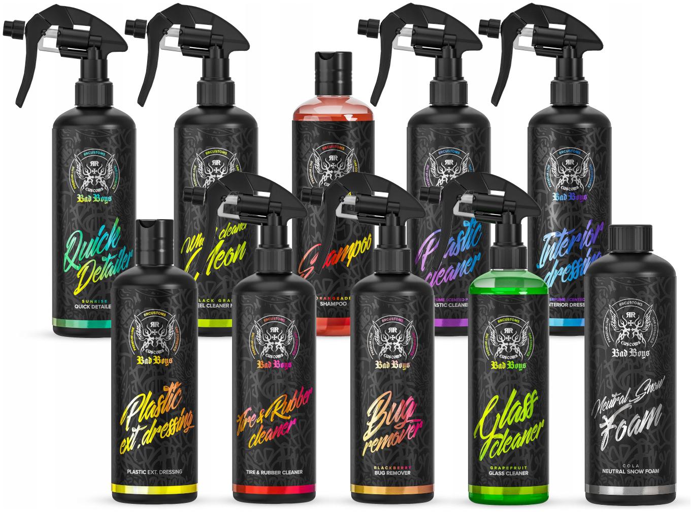 BadBoys — линия автокосметики, разработанная совместно с нашей дочерней компанией RRCustoms LTD из Великобритании. Идея его создания заключалась в создании продуктов, которые помимо хорошо действующих химикатов дают пользователю нечто большее. Фантастические ароматы, удобные флаконы, триггеры или пенообразователи и уникальный дизайн – вот почему мы с гордостью можем назвать линию BadBoys Премиальной линейкой!
