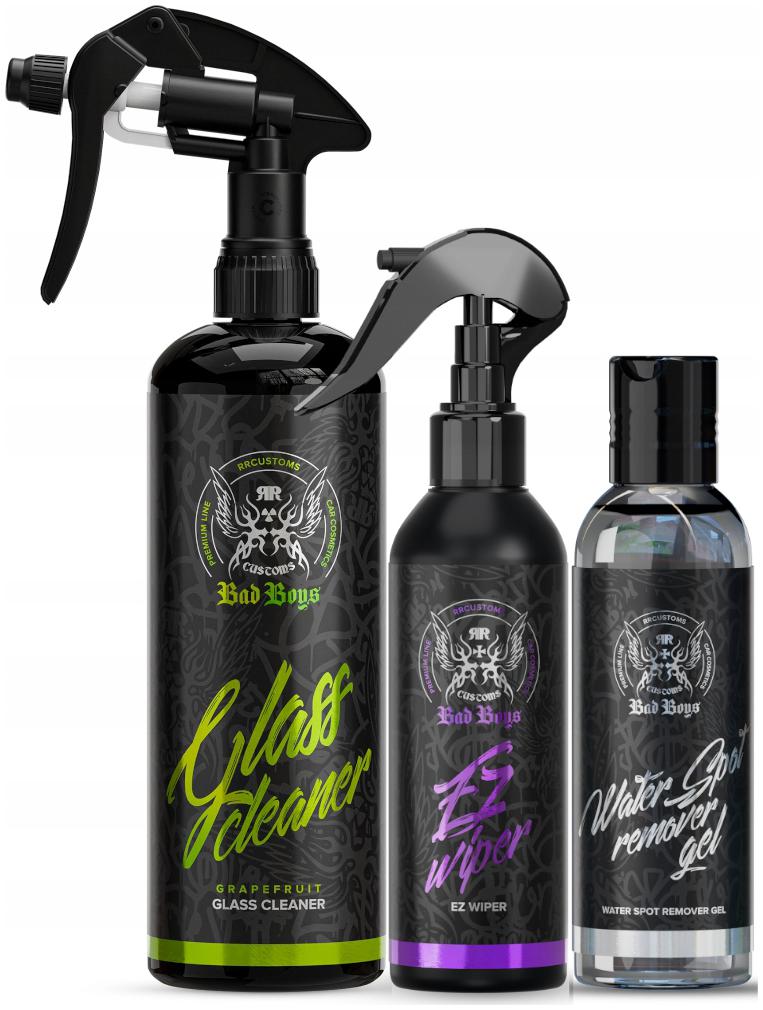- если хотите получить эффект на срок до 6 месяцев, очистите стекло средством BadBoys Glass Cleaner, удалите накипь со стекла водой BadBoys Water Пятновыводитель, промойте стекла спиртом или очистителем для воска BadBoys.