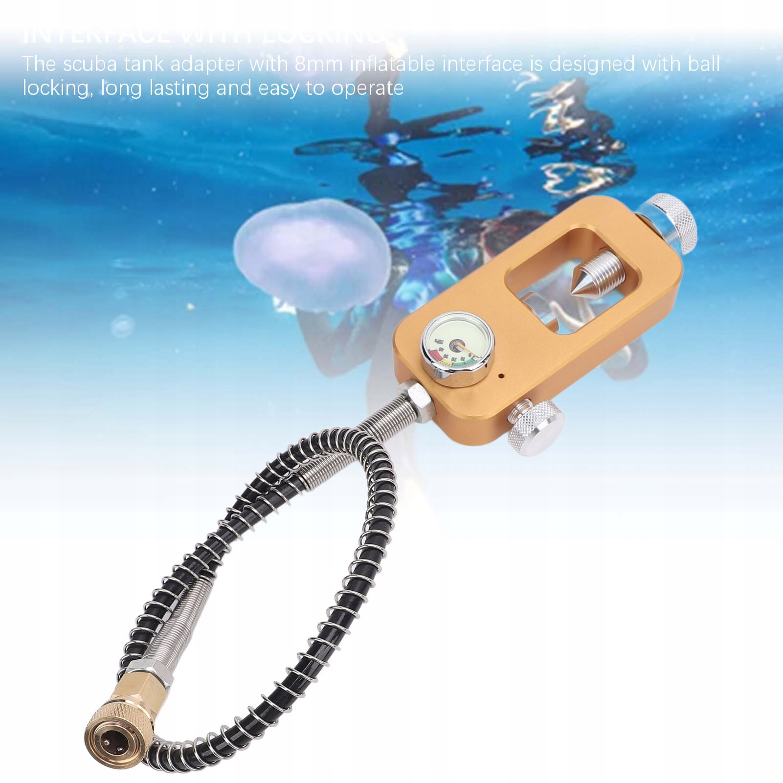 3. Особенности и использование: Адаптер для дайвинга подает газ из большой бутылки в маленькую бутылку через адаптер для отклонения газа; Простота в эксплуатации, облегчает погружение, нет необходимости носить с собой большую шапочку для дайвинга.