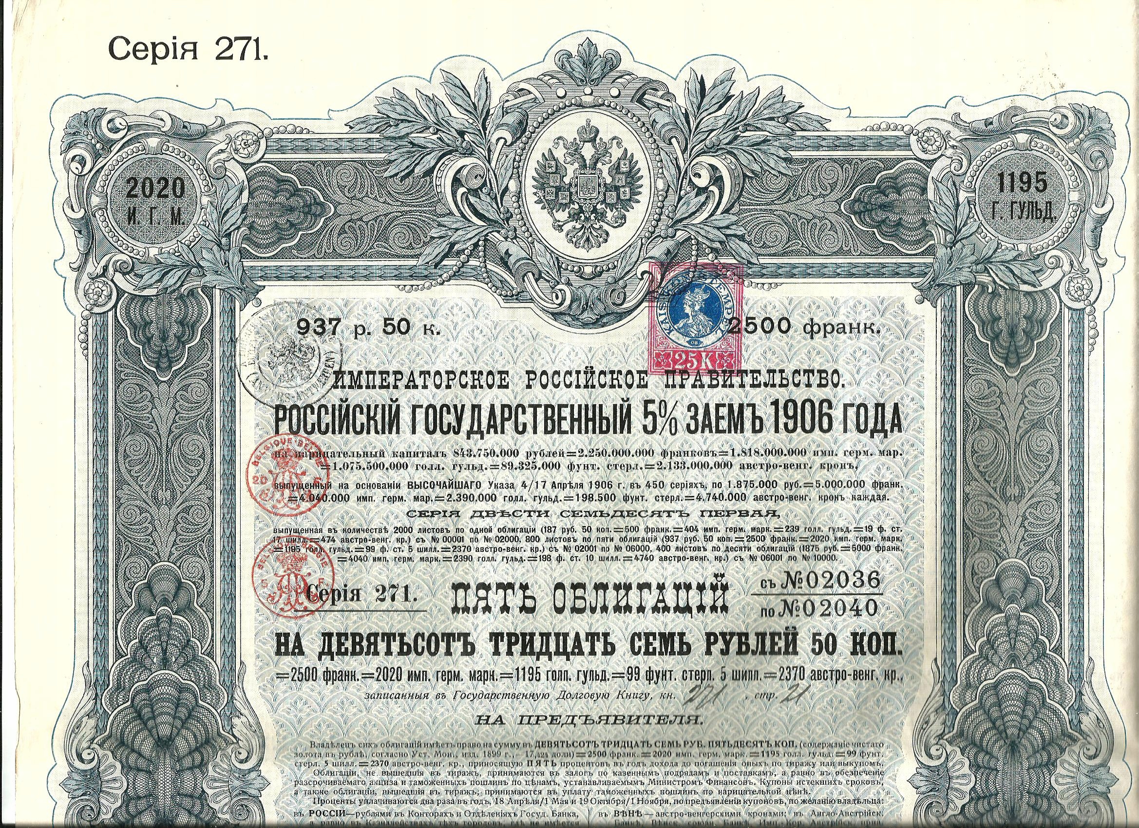 5 % ОБЛИГАЦИИ РОССИЙСКОЙ ИМПЕРИИ 1906 г.