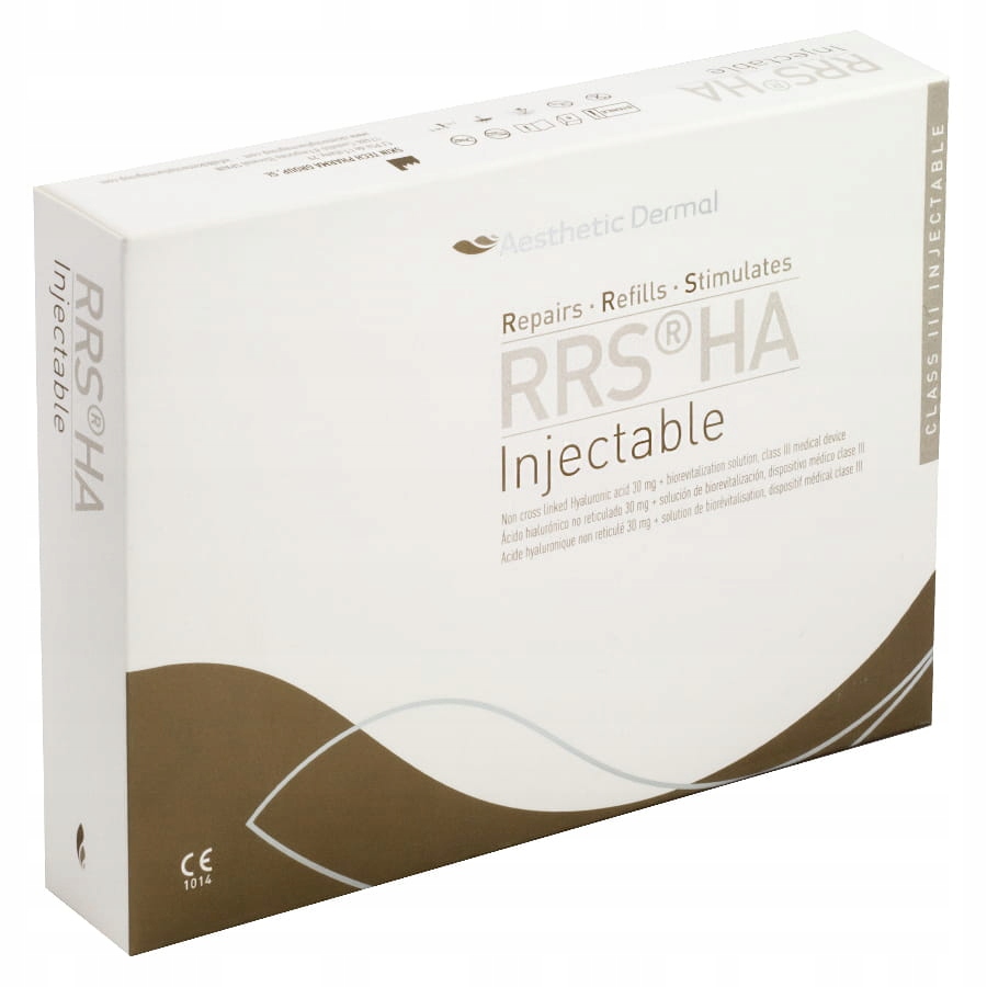 RRS HA Injectable — медицинское изделие III класса, предназначенное для игольной мезотерапии, содержащее 6 мг/мл гиалуроновой кислоты и 4,62 мг/мл биоревитализирующего коктейля, в состав которого входят 10 витаминов, 3 жирные кислоты, 2 кофермента, 22 антиоксиданта, 12 полифенолов, 21 аминокислота, 13 микроэлементов, 3 терпена.