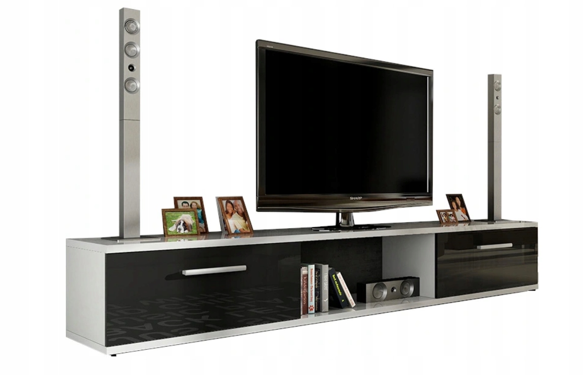 Шкаф под ТВ ALTIN Белый/Черный Глянец