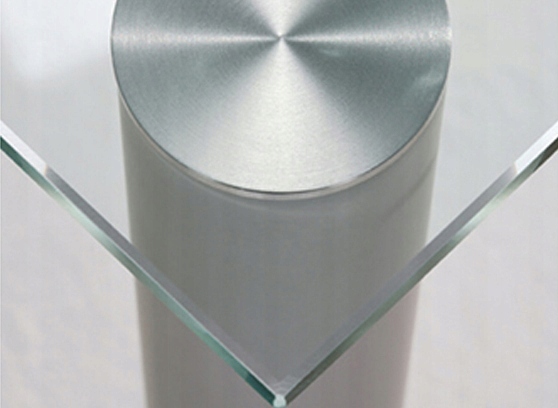 Столешница и полки изготовлены из закаленного стекла, в 5 раз прочнее обычного стекла и соединены с конструкцией с помощью УФ-клейки.