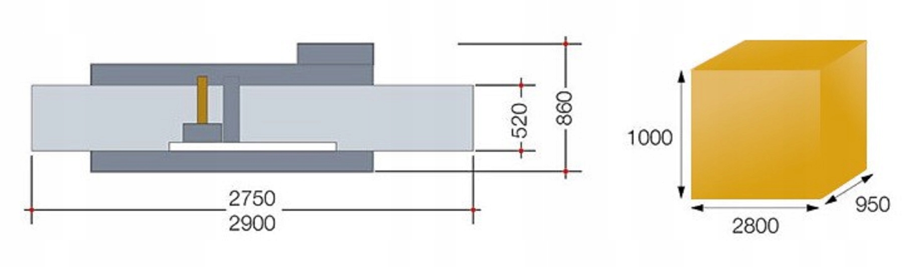 - Длина приемного стола: 2750 мм. 1200 мм