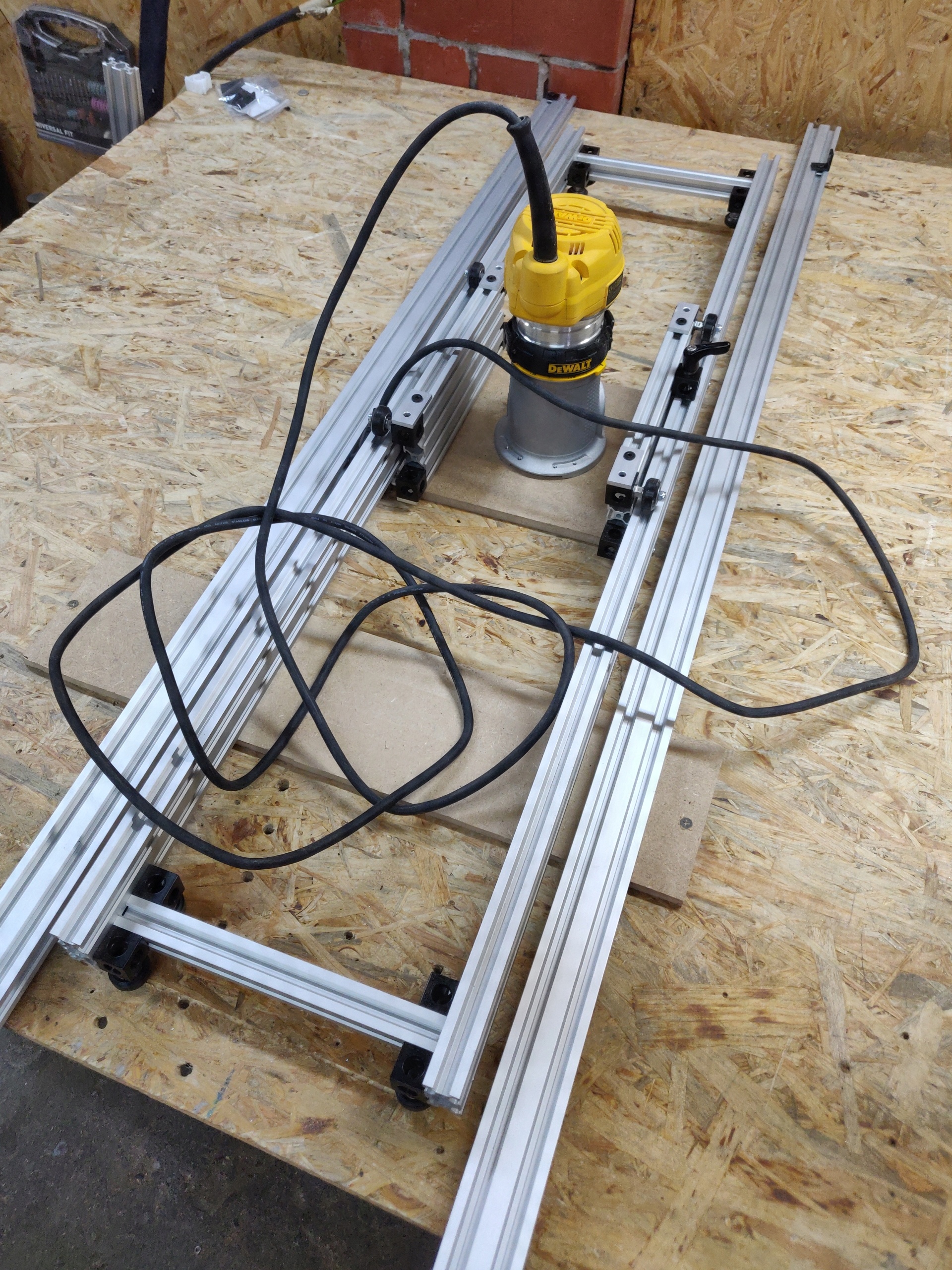 Отдельно два профиля 2080 длиной 1500 мм, которые будут служить осью Y, которая следует установить на ровную поверхность, а затем вставить направляющую оси X.