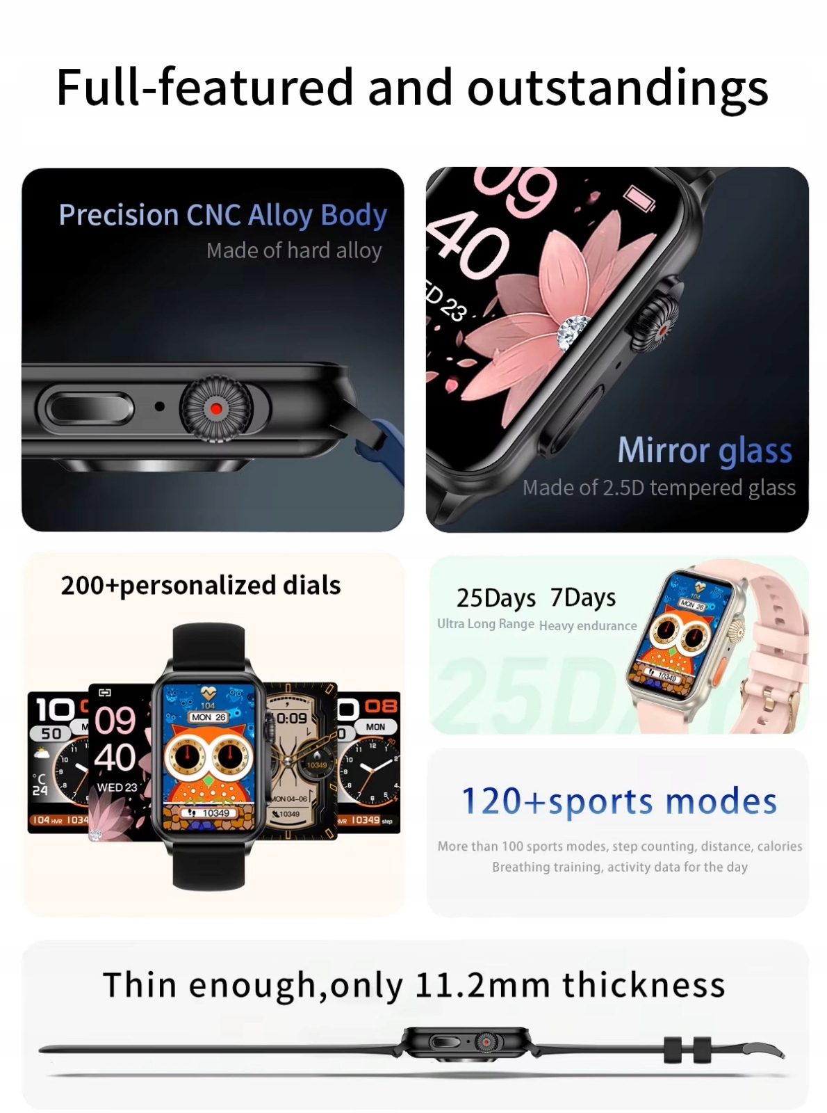 Эти умные часы — больше, чем просто стильный аксессуар — это ваш личный командный центр в ритме напряженного дня. Тонкий и легкий корпус размерами 44 × 35 мм и толщиной всего 11,2 мм тонко подчеркивает запястье, а сменный ремешок (18 мм) позволяет подобрать его к любому стилю. Женственный дизайн, современные технологии – именно то, что вам нравится. Дисплей TFT IPS 1,57 дюйма с сенсорным управлением и высоким разрешением обеспечивает идеальную читаемость. Вы можете выбрать одну из двух тем в меню и до 12 циферблатов, а также дополнительные, которые можно загрузить или создать свои собственные. Подбирайте экран под свое настроение — каждый день заново.