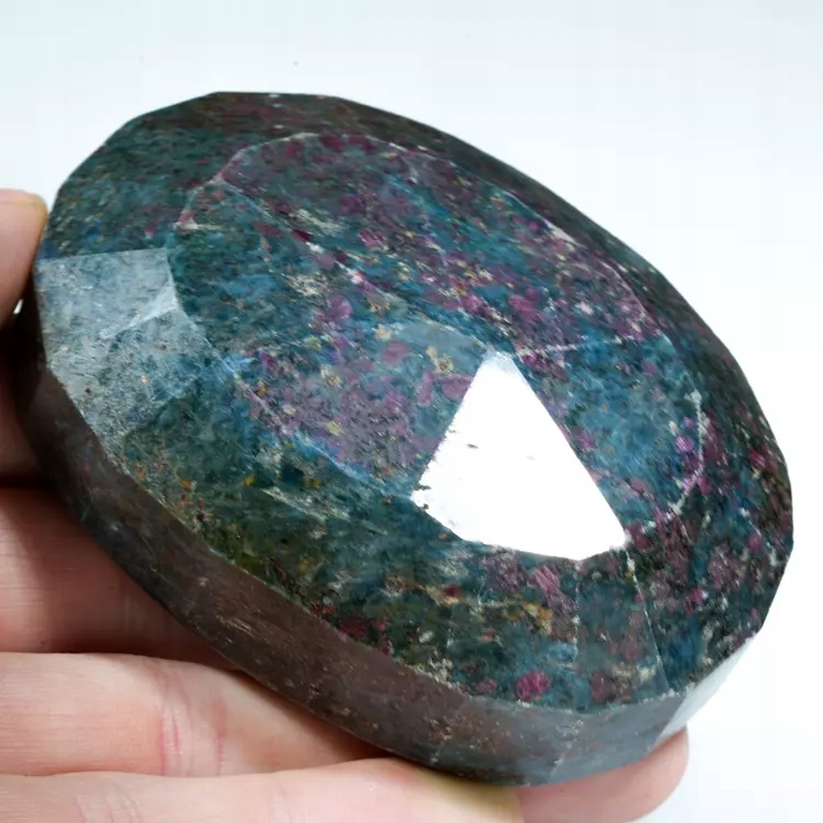 Рубин в кианите – овальный, ограненный камень, светится под УФ