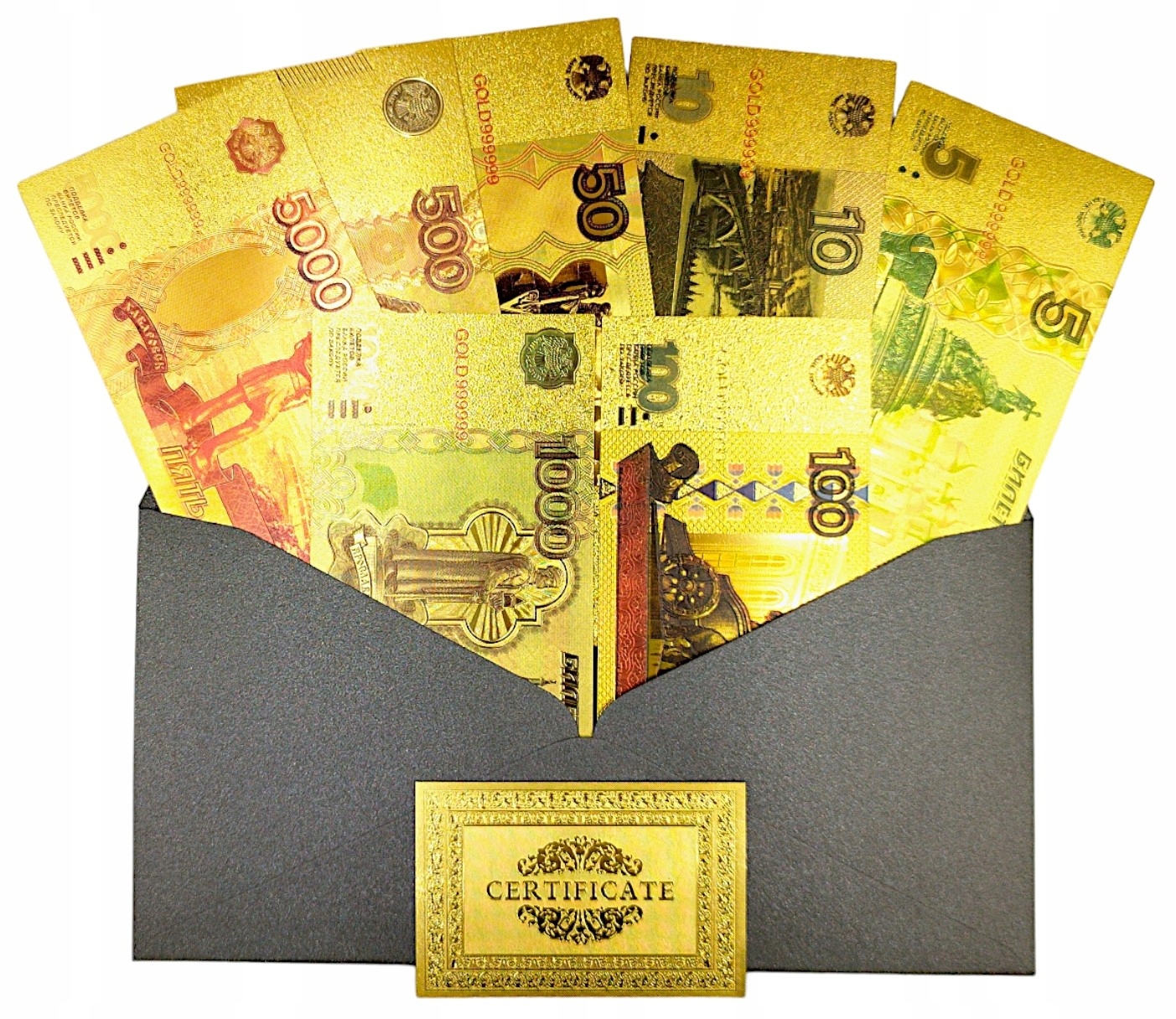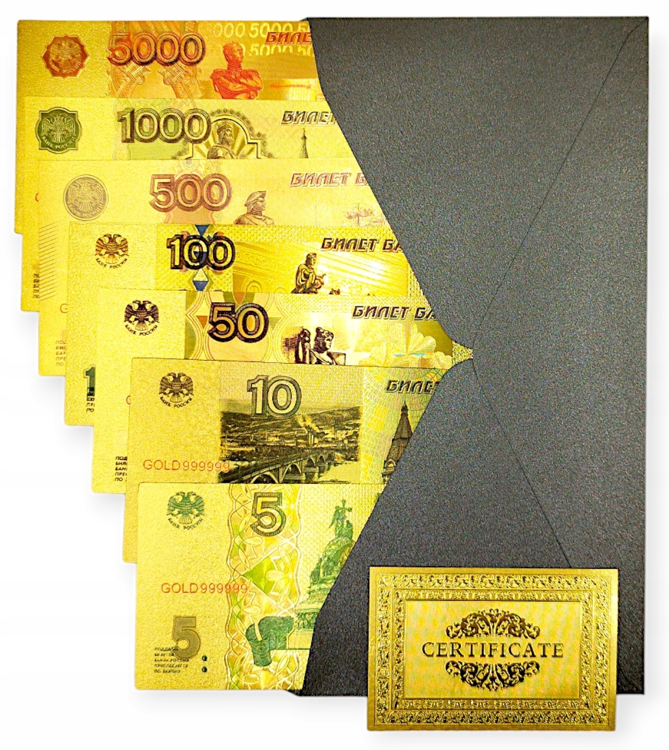 РУБЛЬ РОСІЯ Унікальний колекційний набір банкнот ПОЗОЛОЧЕНЕ СЕРТИФІКАТ