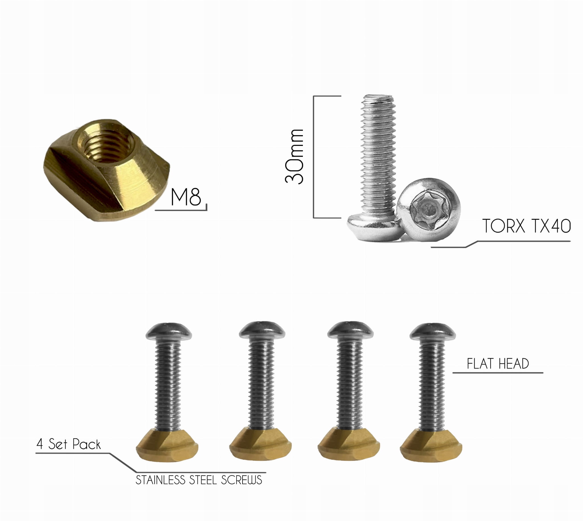 Śruby i Podkładki do Hydrofoila Winga Foila Śruby Płaskie x4 GWINT M8