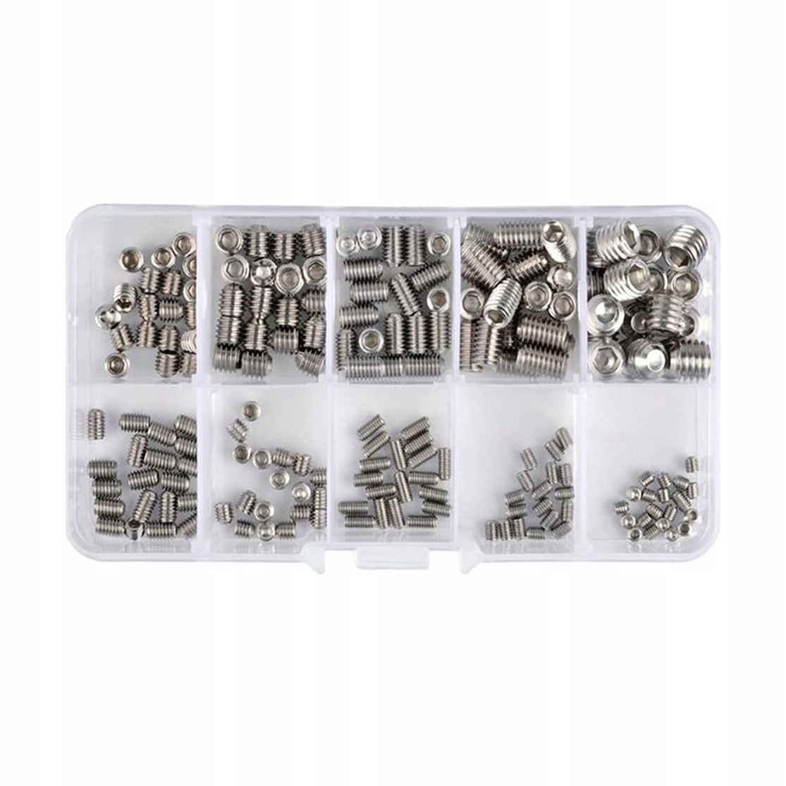 ŚRUBY WKRĘTY IMBUSOWE DOCISKOWE BEZ ŁBA - ZESTAW 200 SZTUK RÓŻNE ROZMIARY